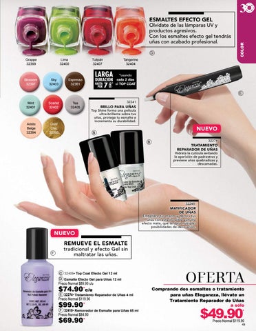 E 32274• Tratamiento Reparador de Uñas 4 ml Precio Normal $119.90 F 32418• Removedor de Esmalte para Uñas 65 ml Precio Normal $84.90