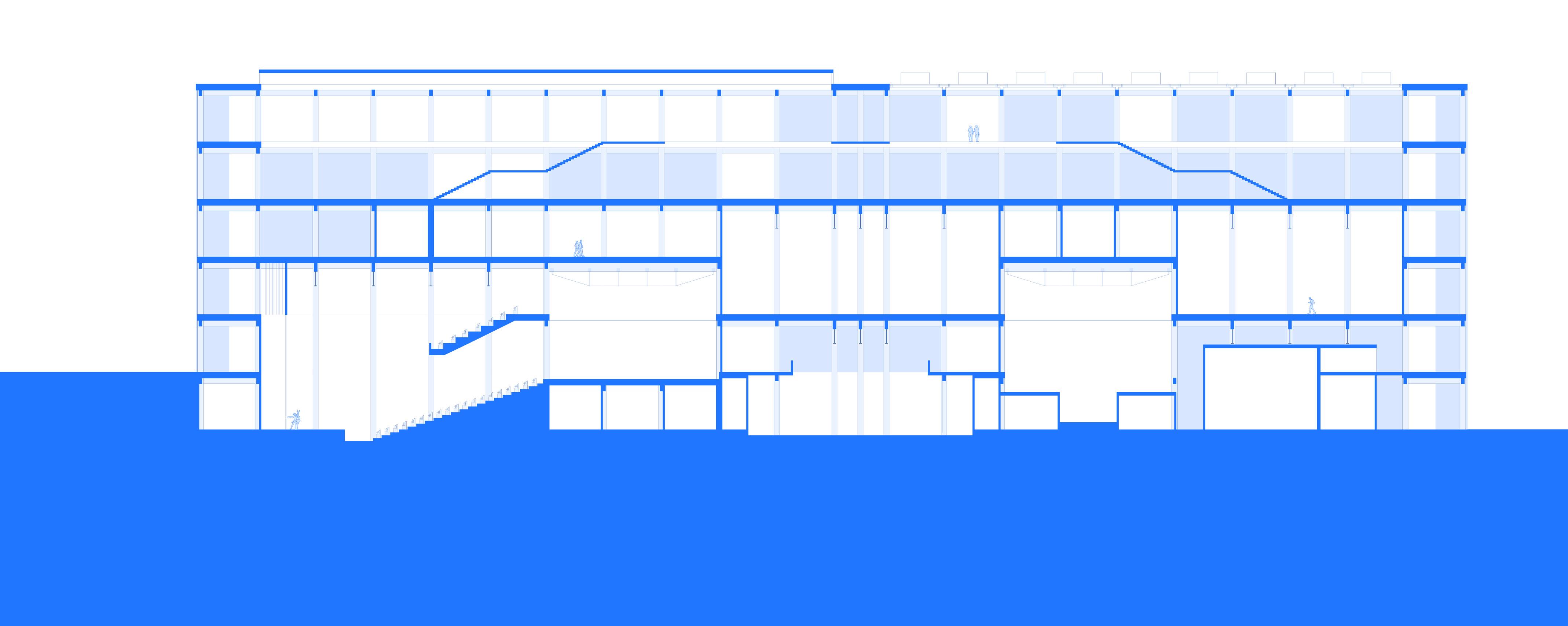 an educational mixed use library for downtown atlanta, designed to take advantage of passive strategies for cooling and ventilation. the library is designed with a public ground floor for events topped with four floors of book stacks encircling a five story atrium. the atrium links the spaces visually, but also allows the updraft of warm air to be released from operable clerestory skylights on the roof deck. solar panels along the roof help provide power, and the precast facade elements are designed to help shade the windows from too much direct sunlight.
