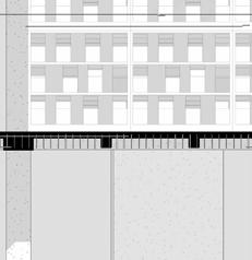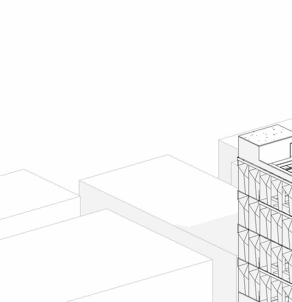 modules either meet on flat edges or curved edges, like-on-like, with spontaneous “amenity blocks” scattered throughout the residential floors allowing both visual relief and spaces for communities to form and gather within the housing complex. each unit has a balcony, some set inside and some outside the facade layer, creating a dynamic relationship of the panel to the habitable space inside. within the development as a whole, this tower sits on top of a much-needed co-op market that occaisonally spills out onto a wide open space just inside the northern edge of campus.
