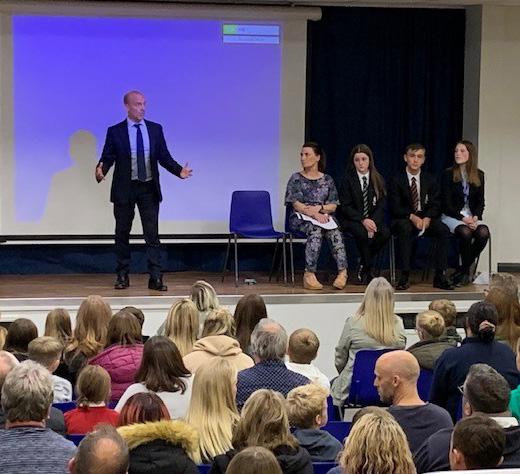 Headteacher, Alun Ebenezer addresses parents and pupils at the Deepings School Open Evening.