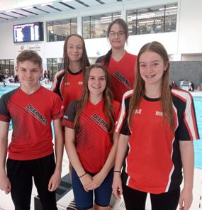 The ‘September Spectacular’ swimming meet took place at Moorways Sports Village, home of Derbyshire’s elite club Derventio Excel. Mille Herrick, Eloise Walker, Jacob Briers, Kendra Greenwood-Covell, James Cash and Mieke McDonald attained qualifying times in a total of 35 events. Between them, they achieved 10 personal bests and 17 qualifying times for next year’s Lincolnshire County Championships., (l-r Jacob Briers, Mieke McDonald, Millie Herrick, Kendra Greenwood-Covell, Eloise Walker. Not pictured, James Cash).