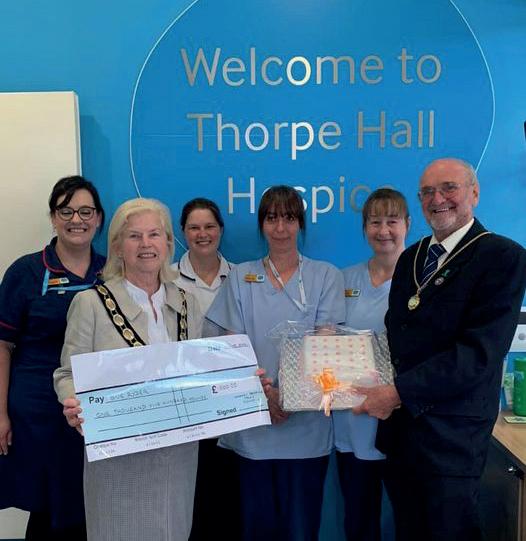 Mayor of Market Deeping, Pam Byrd and previous Mayor Bob Broughton present Sue Ryder Thorpe Hall with £1,500 raised during Bob’s term of office.