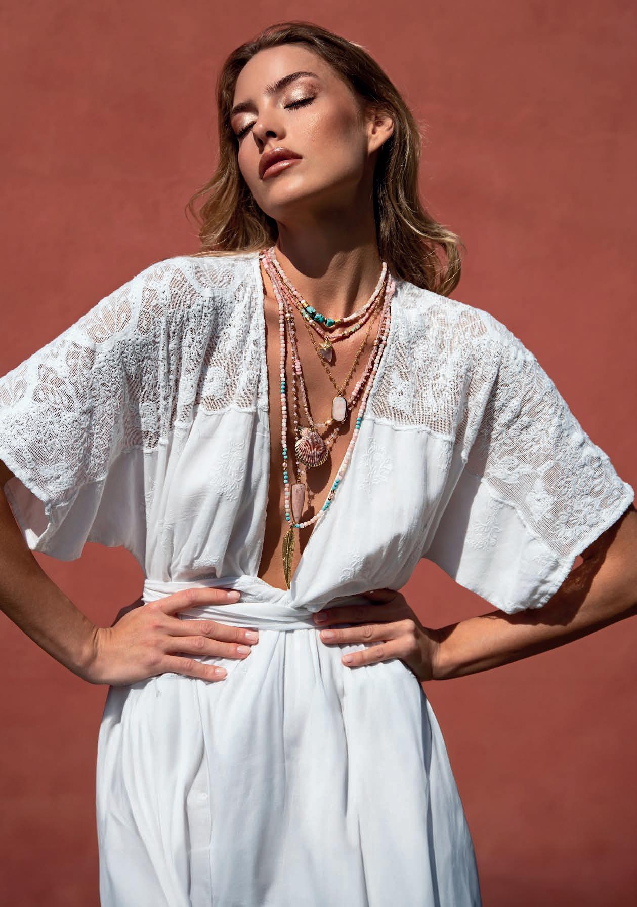 Kayll's beautiful prints are all handdrawn by textile designer Jessica Kayll, who worked with a tailor to create a collection of fl attering robes and cover-ups inspired by the Japanese kimono. kayll.com
