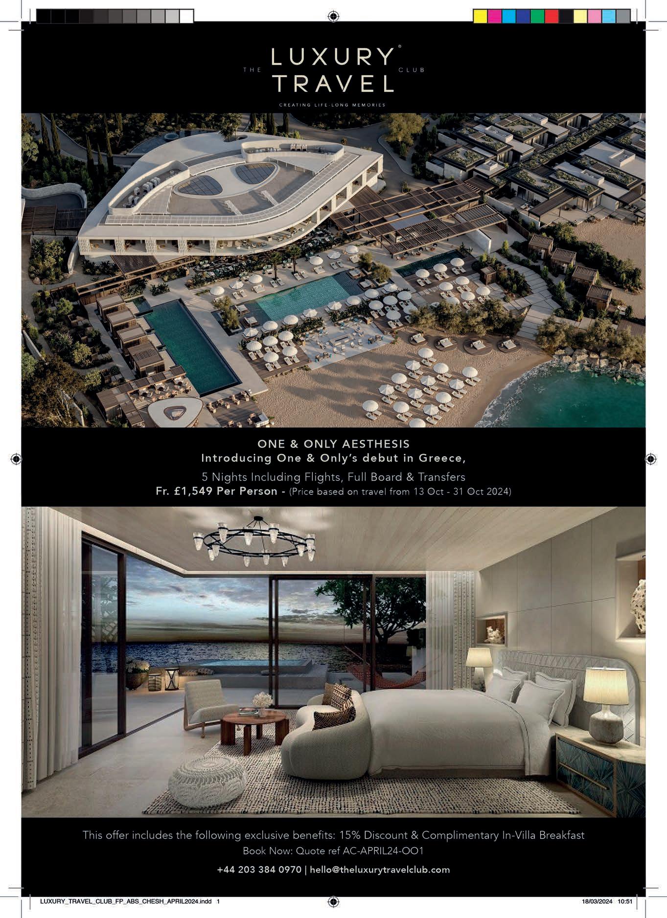 Are you going anywhere nice on your holidays? It might be an uninspired question but are you? Because this issue focuses heavily on travel, and we have lots of suggestions. Wherever you're at with your planning, whether it's this May half term or winter 2025, we're hoping to offer ideas and inspiration. And because this is also our Luxe issue, focusing on all things luxurious, we're travelling in serious style. So we have visited St Lucia's iconic Jade Mountain, a stunning hillside resort where rooms are open to the elements and the impossibly beautiful landscape, travelled to Chicago to sample its famed gastronomic variety, lounged by lakes and pools in Portugal, toured Morocco and sampled wines in the Langedoc, among other trips. And, of course, we've found lots to do and see in London too. Enjoy April.