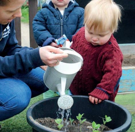 A Our Baby Room has recently been refurbished, it is a light and bright environment for the babies to be in. There are two rooms, Tiny Twinkles for the youngest babies and Dinky Diamonds for toddlers. Tiny Twinkles has lots of sensory toys, which are set in di erent areas for the children to explore and feel their way around, learning new textures as they go. There is also a black and white area where the children are visually stimulated. Our Practitioners take the children out to the farm for walks and to visit the animals that are cared for there.