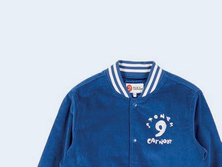 This button-down corduroy varsity jacket from the Rolling Stones' lifestyle brand features embroidered logo on the chest and RS No. 9 Carnaby St label on the sleeve, plus an embroidered Stones bubble letter tongue logo on the back, £180. rsno9.co.uk