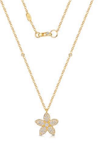 This pretty feminine fl ower pendant has been cra ed from luxurious 18ct yellow gold and executed with a stunning surface polish to enhance the fi re and brilliance of each chosen stone. berrysjewellers.co.uk