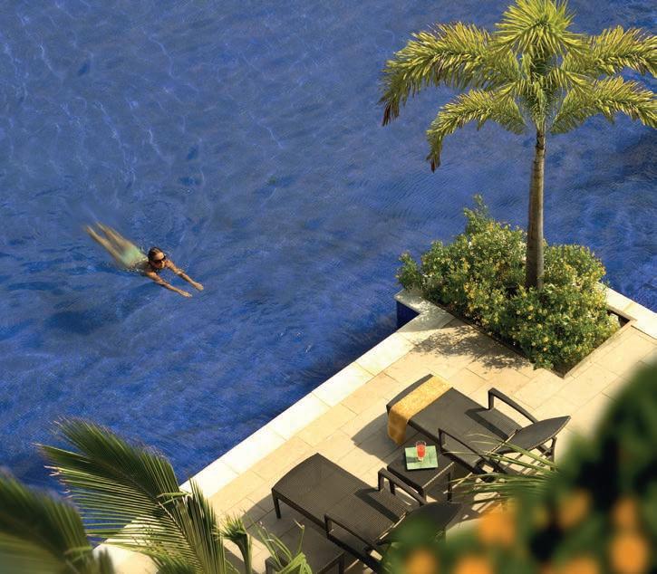 THE ROOM – Our second stop was a twohour drive to the north of the island, near Rodney Bay and Pigeon Island National Park. The lobby at The Landings is palatial – soothing and elegant and it felt more like a grand residence than a hotel. The suites and apartments are all spread out between a marina and the beach and zippy little golf buggies are available to ferry you from place to place. We stayed in a two-bedroom beachfront apartment with a huge kitchen, living area and a sun-drenched terrace. The decor was chic and simple, and there was even a laundry room (with washing powder), plus a rotation of butlers who were available from 6am until midnight if needed and helped with tasks such as organising a babysitter, room service or o ering to fetch things our son had left on the beach. Having such a large, well-equipped space meant our son was a bit calmer and had somewhere to play out of the sun.