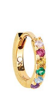 These beautiful hinged hoop earrings are made in 18ct gold plated silver. They feature a kaleidoscope of purple, blue and green cubic zirconia. catherinezoraida.com
