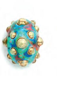 Featuring bold aquatic tones and dotted in gold, these Panconesi earrings add a sense of magnifi cence to the simple stud. £445 koibird.com