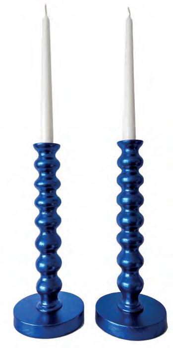 These luxurious and sustainable candlesticks are hand-crafted from reclaimed table legs and gilded in genuine royal blue dyed silver leaf. £140 webbandgray.com