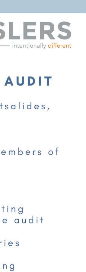 A I feel we have a great team - our two newest members came from a practice that was managed very di erently than ours and they have adapted well. How do we judge this? By the quality of work and the happiness of our team members – it pays to have a happy team that is willing to support each other and have great rapport with our clients. Obviously, any change to a client’s accountant can be of concern and we’ve had a busy year reaching out to reassure. However, I feel that if our team are happy, that will feed through and probably give more reassurance than our words could.