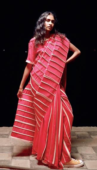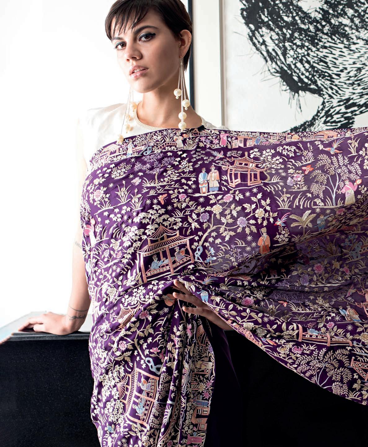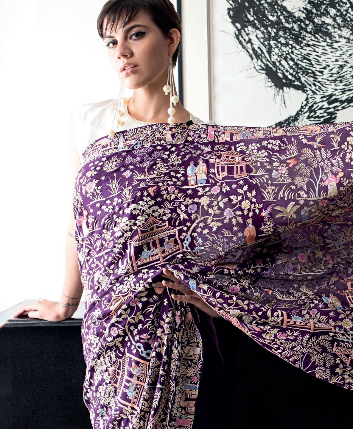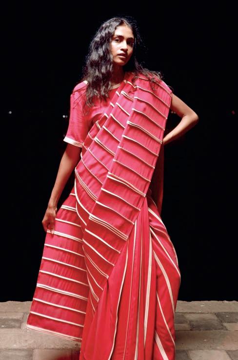 saris made over the past decade. The show includes saris made of woven steel, distressed denim and the very fi rst sari worn to the famed Met Gala. The textures, weaves, colours and drapes of these beautiful textiles create a snapshot of the fashion revolution the sari is experiencing right now.