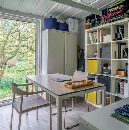 The separate one bedroom annexe was designed by John Winter in 2001 and was originally designed as additional accommodation. Now used as an o ce, the annexe sits modestly amid a glade of mature magnolia trees. Hill Pasture has an array of outdoor spaces which includes a courtyard terrace and herb garden. Today the gardens are mostly informal, with beds of roses and perennials, an orchard, a natural pond, a spring fed swimming pool with Roman ends, surrounded by a rose clad arbour and the 'Chatsworth' walk with clipped yew hedging leading to steps to a viewing platform with views across the Chelmer valley.