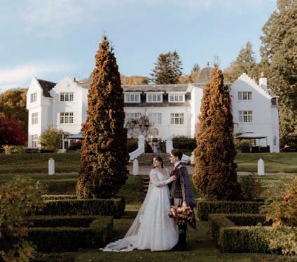 L ocated in the Scottish Highlands, Blair Castle is an iconic venue for a fairytale wedding. Dating back over 750 years, this white-washed castle o ers a mixture of grandeur and historical charm with its turrets and vast estate surrounded by rugged scenery. Why It’s Exceptional: Blair Castle o ers couples a taste of Scottish history combined with modern luxury. The stunning State Dining Room, Victorian ballroom, and intimate church on-site create various options for both ceremonies and receptions. The surrounding Atholl Estates also o er plenty of opportunities for dramatic photos amidst the moody Highland landscapes, ideal for adventurous couples who love the outdoors. atholl-estates.co.uk