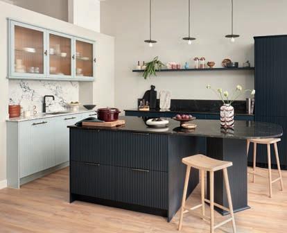 Experiment with di erent textures and finishes to add depth and character. “Matt finishes can create a sleek, modern look, while high gloss can make a space feel more open and reflective,” Melissa explains. Additionally, integrating materials like wood or metal can add warmth and contrast.