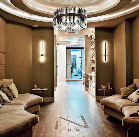 “The extension houses a home o ce and the master suite, which the client desired to have a more contemporary style than the original home. This is achieved through a striking lighting design featuring indirect lighting from concealed LED channels, and minimalist joinery and wall panelling.