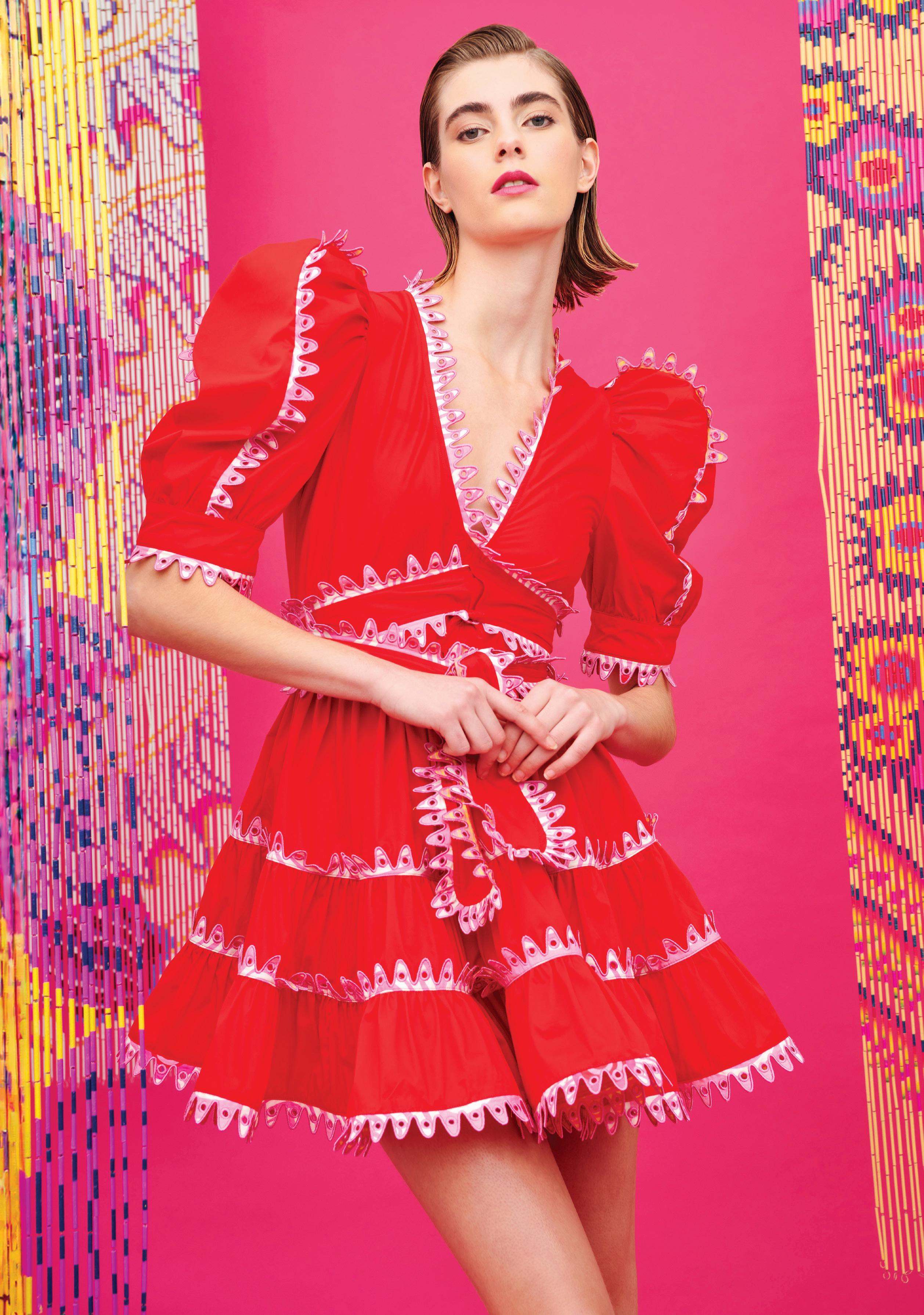 Saunter through sunny days in this feminine midi length summer dress in a blend of cotton and silk. The fl oral print is given a summery touch with a so coral tone, £595. reallywildclothing.com