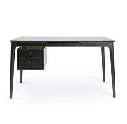 The Yves desk is an elegant and compact writing desk, with so ly sculpted legs and a tiered top. It has an inlaid dark brown leather writing surface, two drawers and a cable access hole to each side, £3,550. pinchdesign.com