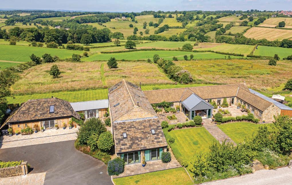 airview Barn is a magnificent collection of former farm buildings, lovingly converted in 2007 into a stunning modern family home with two attached cottages each providing sizeable accommodation. The main house o ers 4,262 sq ft of stylish, well-appointed living space, alongside a further 2,688 sq ft of additional accommodation within the two cottages, the whole set in 10 acres.