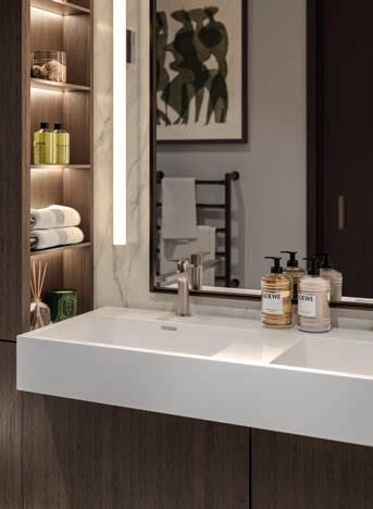 built wardrobes, and ensuite bathrooms that rival five-star hotels with large-format marble e ect porcelain tiles, rainfall showers and bespoke vanity units. Every inch designed for both form and function.