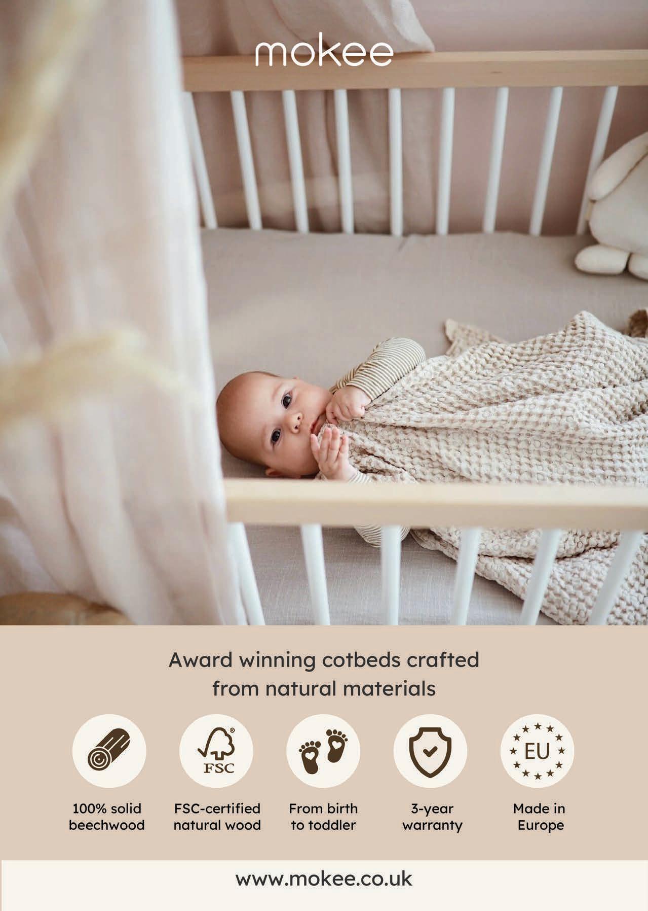 Becoming a parent shouldn’t mean sacrificing style. Cushy Pu creates super comfortable maternity wellness products that are designed to look good in your home. Everyone’s journey into parenthood is unique, and we believe new parents should have the option to express themselves in their own way. That’s why our products are both stylish and practical. Cushy Pu uses premium, safe materials to create products that enhance rest, comfort, and overall well-being. Our full-body pregnancy pillow o ers support for the back, hips, knees, neck, and head, helping mamas-tobe to get a restful and comfortable night’s sleep. It’s designed to have a life beyond pregnancy and can also be used as a nursing pillow or as a cosy ‘nest’ for your baby. From £135 for a whole pillow, with cover and travel bag. cushypu .com