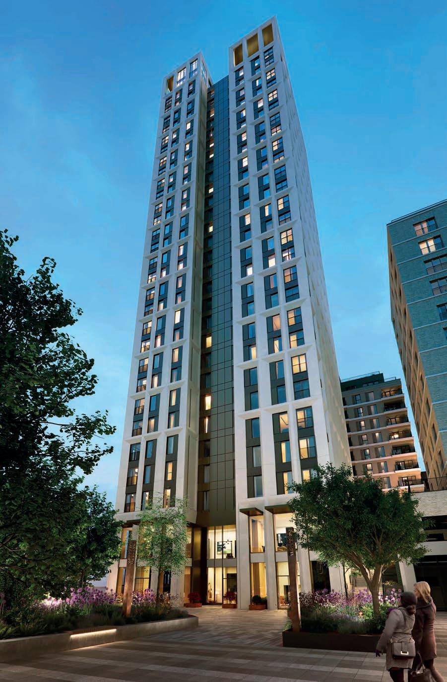 At its heart is a 29-storey tower, the tallest residential structure in the borough, accompanied by six other meticulously crafted buildings bisected by a linear central garden, with further roof gardens and terraces.