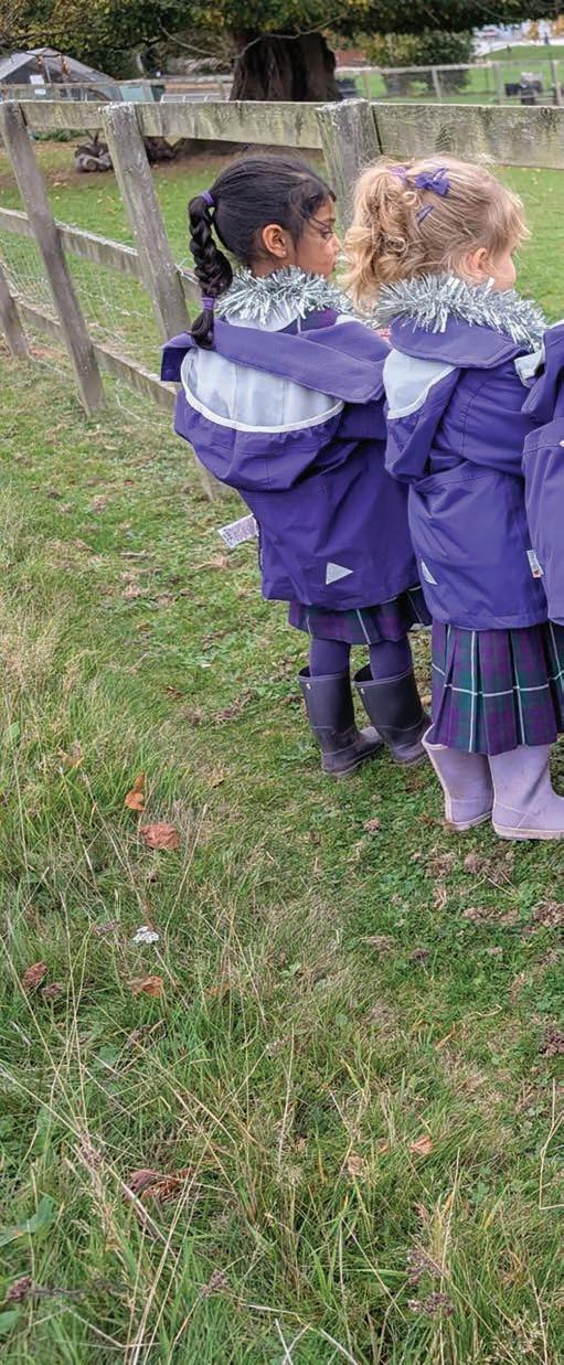 Within outdoor learning the pupils have had the chance to share their learning from the classroom to the animals and the grounds that the school is in. Linking curriculum stories to the animals on our smallholding enhances pupils’ learning through interactive and meaningful experiences. Reception went on a scavenger hunt to find ‘Stickman’ involving clues from the animals and their environment. For Year 2, their focus is on the seasonal e orts to care for wild animals by creating bird feeders from apples and sunflower seeds, which demonstrates a commitment to our wildlife. Our early years classes also take part in the ‘Outdoor Learning Advent Calendar’. Under each door is a festive activity that includes ‘feeding the pigs a Christmas treat’ and ‘decorate the outdoor Christmas tree’ – getting all of our pupils into the festive spirit.