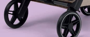 Venicci are masters of elevated strolling, and the new Upline 2 travel system with Tiago 360 car seat doesn’t disappoint. Beauty meets innovation in the Upline 2’s refined chassis – delivering on both style and functionality. This is a seriously stylish stroller, and I was impressed with the new plush fabrics, details, and sleek hardware. The lightweight, yet sturdy, design makes pushing your little one feel e ortless and navigating both pavements and uneven terrain is a breeze. My little one was both comfy and secure in the seat, with a built-in headrest and magnetic five-point harness. She loved being able to switch between facing me and out towards the world. The carrycot is snuggly for babies and has an ergonomic, ventilated mattress and base. It’s perfect for changeable weather with water-repellent fabric and UV 50+ protection. A handy new feature, the Upline 2 also has three adjustable height levels for raising the carrycot and seat unit. I found the car seat easy to attach to the stroller