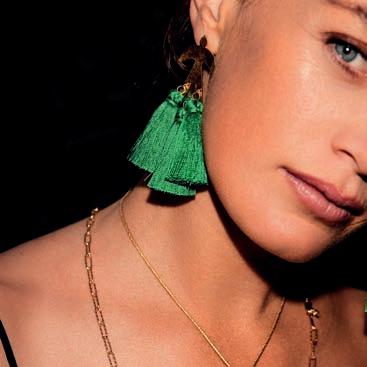 Tory B u rch is ta king a new a ppro a ch to colo u r, sta rting with sh a des of green — emerald, olive, moss, a nd ch a rtreuse, sometimes all in one look. Pops of cob alt a nd oxblood a re juxta posed with cool-toned gra ys, m ushroom, a nd n a vy. toryburch.com