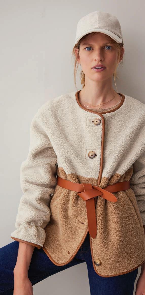 We're coveting Wyse's Celia borg jacket with its cosy feel, chic faux leather detail, mock horn buttons and boxy fit, £295. wyselondon.com