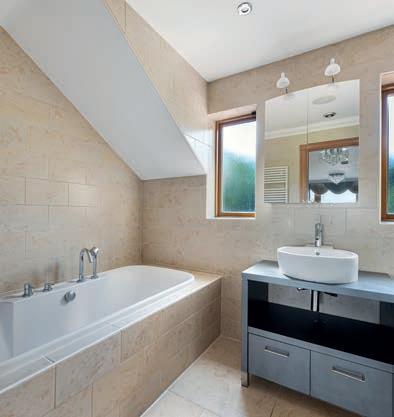The main house o ers almost 4,000 sq. ft. of beautifully designed accommodation. The heart of the home is an impressive openplan kitchen by Jeremy Wood Interiors, with an Italian marble island, solid wood cabinetry, and integrated appliances. There are elegant reception rooms, a utility, and five well-appointed bedrooms upstairs, including a luxurious principal suite with an en-suite shower room and walk-in wardrobe.
