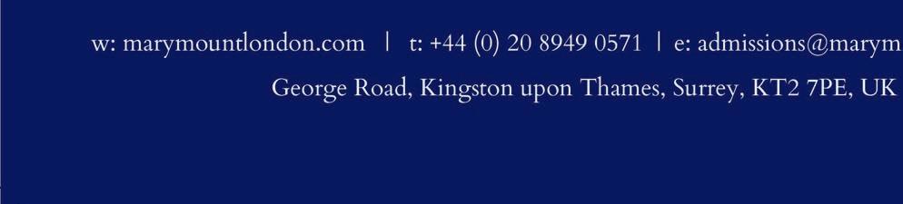 Head up the drive of Marymount International School London and you could almost believe you had stepped back in time. It sits on a private estate close to Coombe Hill Golf Club and the delightful Edwardian main building harks back to an age when fine architecture and pride in craft prevailed. The sevenacre campus with spectacularly well-tended gardens is a calm oasis. Yet Kingston upon Thames is just down the road, it’s close to the London ‘villages’ of Richmond, Wimbledon and Putney, and with superb road and rail links to central London (just 20 minutes away) and Heathrow.