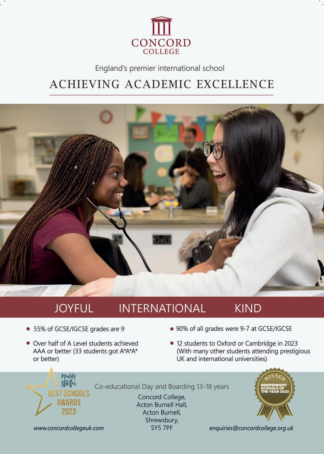 USP: St. Michael’s School is one of the UK’s leading independent schools, consistently highly ranked yet remaining inclusive and committed to our mission of success for all students who join us. We o er an outstanding education, combining the pursuit of academic excellence with all-round personal development, for boys and girls aged 3-18 years. We are extremely pleased to announce another year of outstanding A-Level results with 79% of all grades A* or A. Notable alumni: Robert Buckland MP, politician, former Lord Chancellor, Ivor Richard, politician and diplomat, British Ambassador to the United Nations.