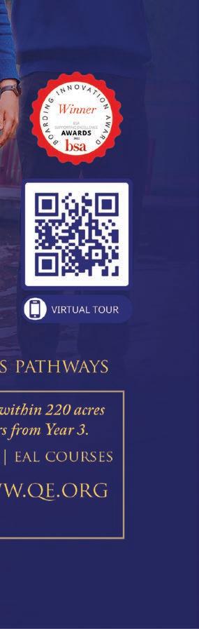 ISA senior schools are among the best in the country. To be the ISA Senior School of the Year, applicants had to demonstrate how the school makes a positive di erence to the outcomes of the pupils in its care. The QE Faculty philosophy has a fixed focus on academic excellence and preparation for the future but with an emphasis on maintaining a sense of creativity and fun – and gives more options to students, their individual talents and how they want to shape their personal development during their time at QE.