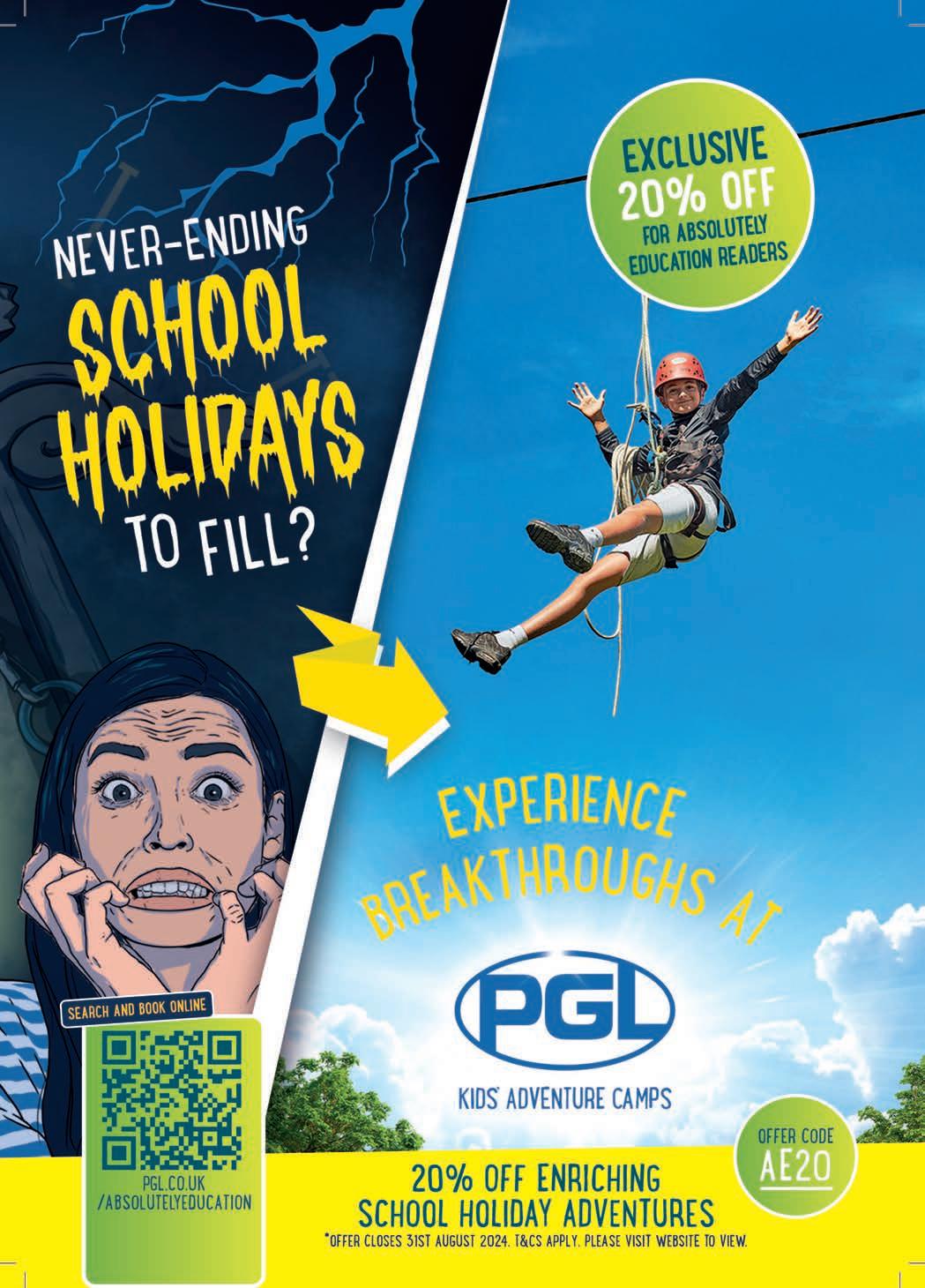 A trusted provider of school trips, PGL also o ers brilliant Kids’ Adventure Camps – fun, memory making and new skills for them, time o for you