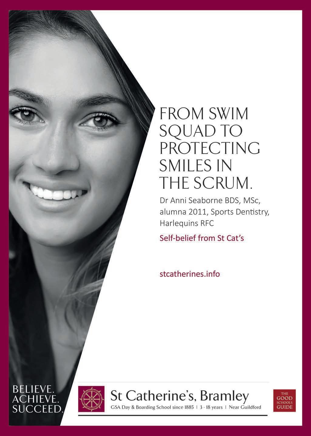 ahead – so a good time to consider where sport fits into education. Many elite athletes have been nurtured and developed on the playing fields of independent schools, a source of eternal pride and an example to those that follow them. But sport is much more than that, and we’ve gone beyond the trophy cabinet to ask what else it gives to young people and to school life.