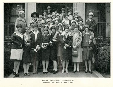 [1] Although their chapter is closed, these women from Alpha Alpha (Iowa Wesleyan College) continue to get together to celebrate sisterhood.