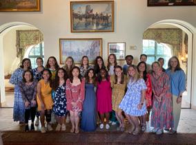 Alumnae toured the Sydonie Mansion, a 41-room Mediterranean Revival estate built in 1883 with a lakeside view, lush gardens, and koi ponds. After the visit, the group went to lunch and wrote holiday cards for people living in nursing homes.