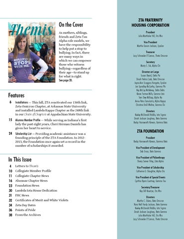 As mothers, siblings, friends and Zeta Tau Alpha role models, we have the responsibility to help put a stop to bullying. In fact, there are many ways in which we can empower those who witness bullying—regardless of their age—to stand up for what is right. See page 20.