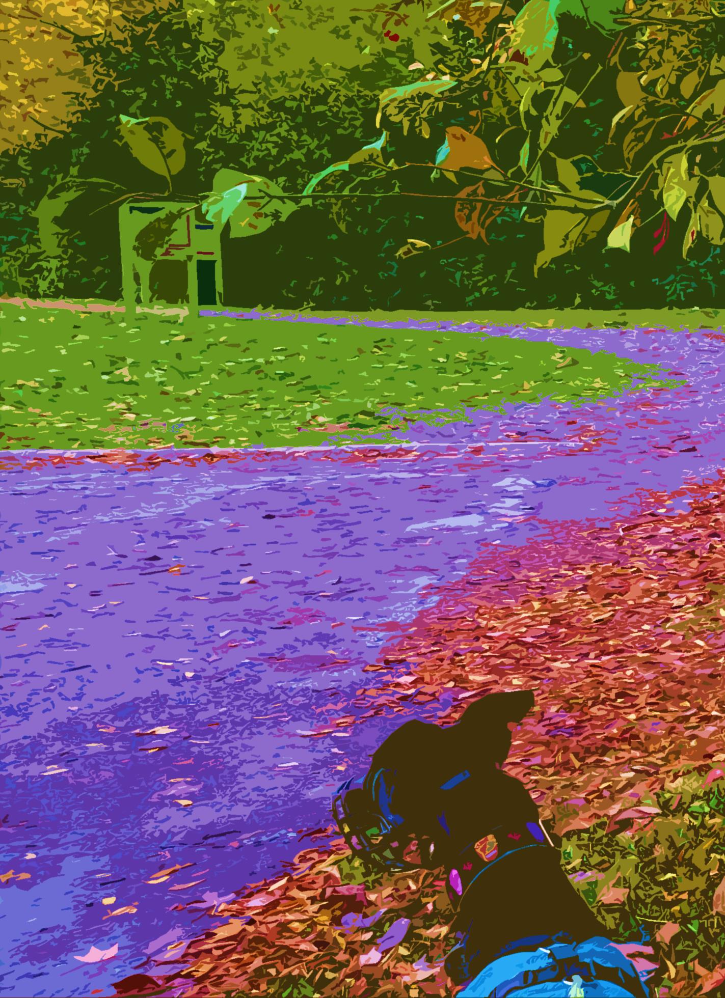 Sick black dog and I kick leaves