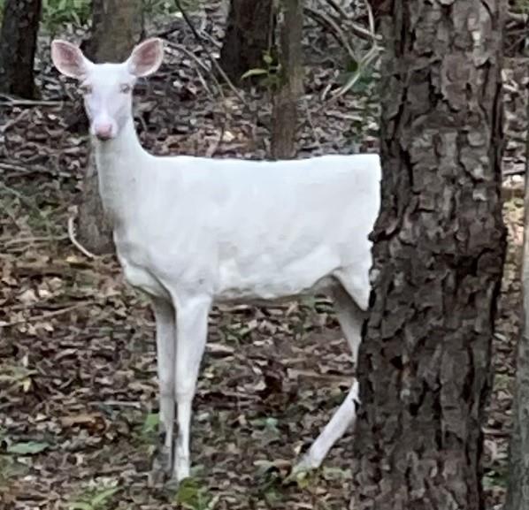 I come around a corner and an albino deer a mere six feet away startles me. I stop and stare. The deer approaches. I reach out to touch it and lose consciousness.