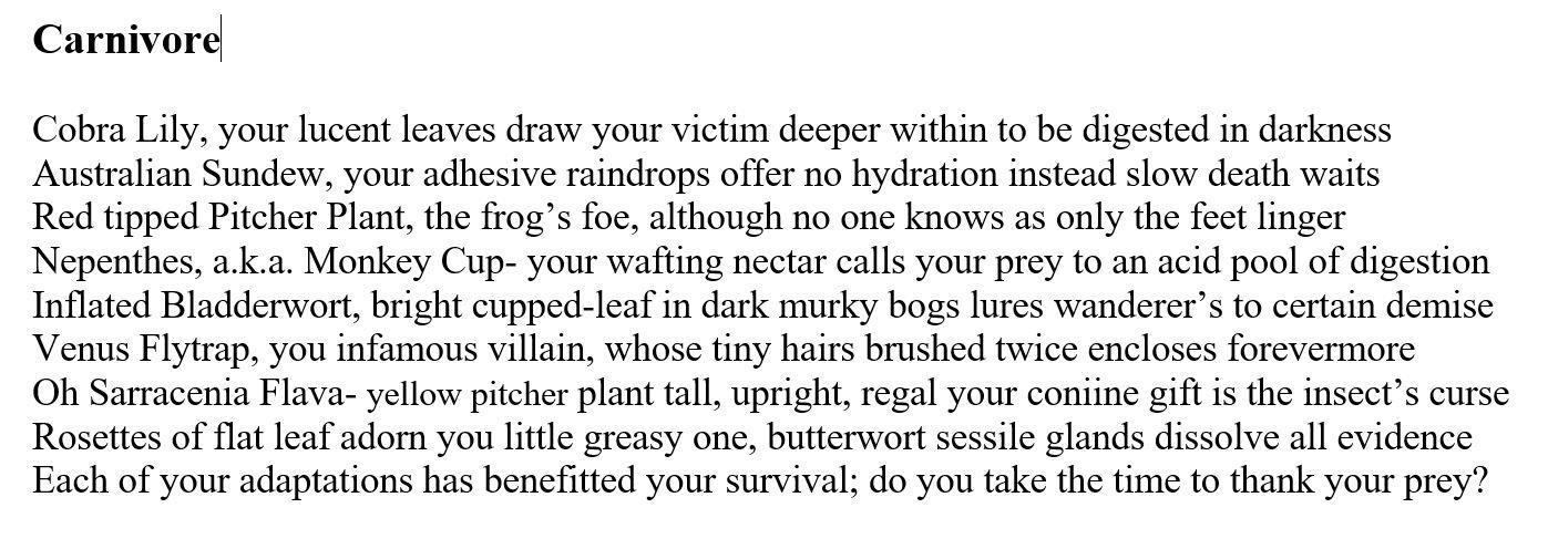 I once wrote a poem using words in my buttoned-up head. The poem did not know what it wanted to say. I did not know what I wanted to know, so I trusted the words as they churned out of my pen.