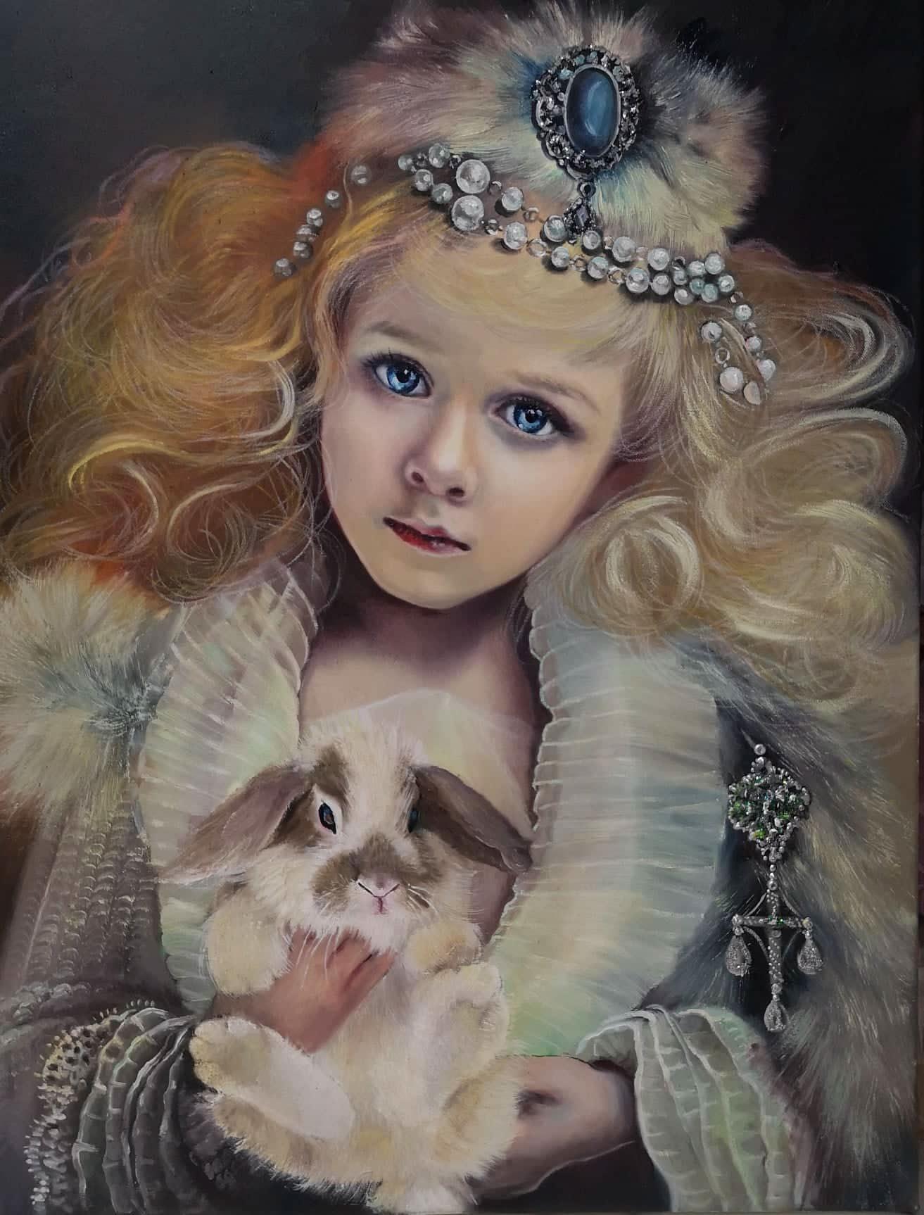 She worked in different fields, but her whole life was full of been painting and writing( not only on canvas, but also on walls, fabric, shoes). Her art, despite of some studies in the USA and Greece, has been following her intuition and inner wishes to create and live. Her poetry and her last name's meaning:"Caviar", became the inspiration to create Art projects, with originality,sensitivity, love for nature and mankind s evolution. Anthropocentric artworks ( portraits, semi abstract or classical, figures from Greek Mythology, Mediterranean World), were her inspiration, as well. The lyrics of her poems on canvas have created some interesting artworks with hyper realistic techniques as A Dreamy Surrealism “.Caviar” , one of the lower form of Life, as its of salmon fish, general fishes, or snails , has offered the inspiration for paintings which involve Caviar as a base which can led to higher forms of Life That of humans', and alltheir achievements through Time, as well !However, the woman figure as a whole and all the tenderness of her vision about children with a great extend of inner deep feelings are often exposed in her vivid paintings.
