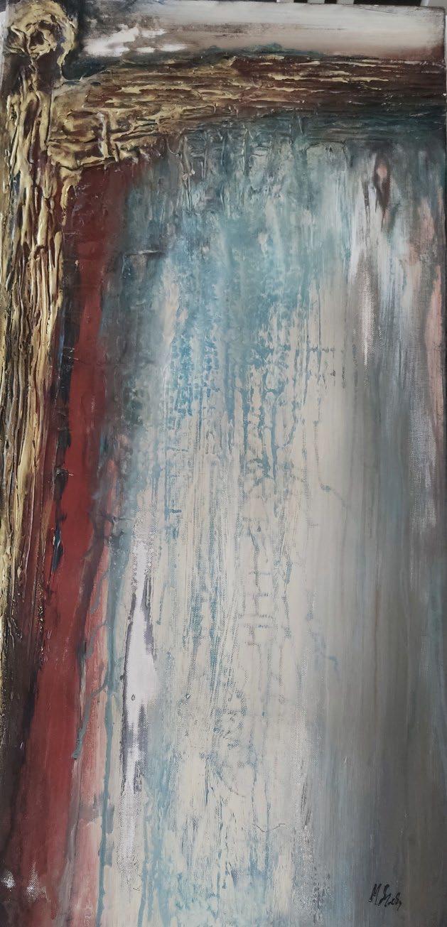 Scorre la mano sulla tela, un tratto pittorico agile, pennellate leggere, immediate, mosse da ispirazioni, forse dalla musica di sottofondo, sono opere che cantano nelle quali si intravede il gesto che esprime il pensiero, sembrano note musicali guidate da una creatività poetica, coinvolgono lo spettatore e lo esortano a guardarsi dentro, a guardare la forza della natura con i suoi occhi, lungamente cercata e oggi finalmente trovata nella potenza del colore.