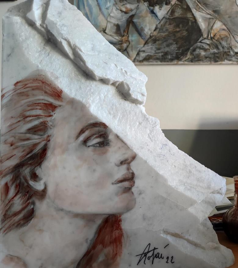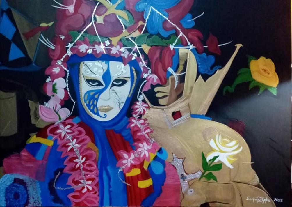 Born in April of 1959, in Thessaloniki (GREECE), rooted in “lost homelands”, kneaded with elements of local Greeks, evolves into a restless, bold, lively presence that finds its way into “rich” paintings enriched with mixed techniques and materials Her studies in Costume, Hagiography, Theatrical Garment, Clay, Fayum Jewelry and Painting united into a creative, impressive result of work of art. Her works are dominated, on the one hand, by colors such as red, black. Everywhere the seal of gold! Everywhere, femininity, the passion for beauty, the laziness, the remembrance of all time from hand, the introverted, sensitive side, possibly of a personality who experienced difficulties early on.
