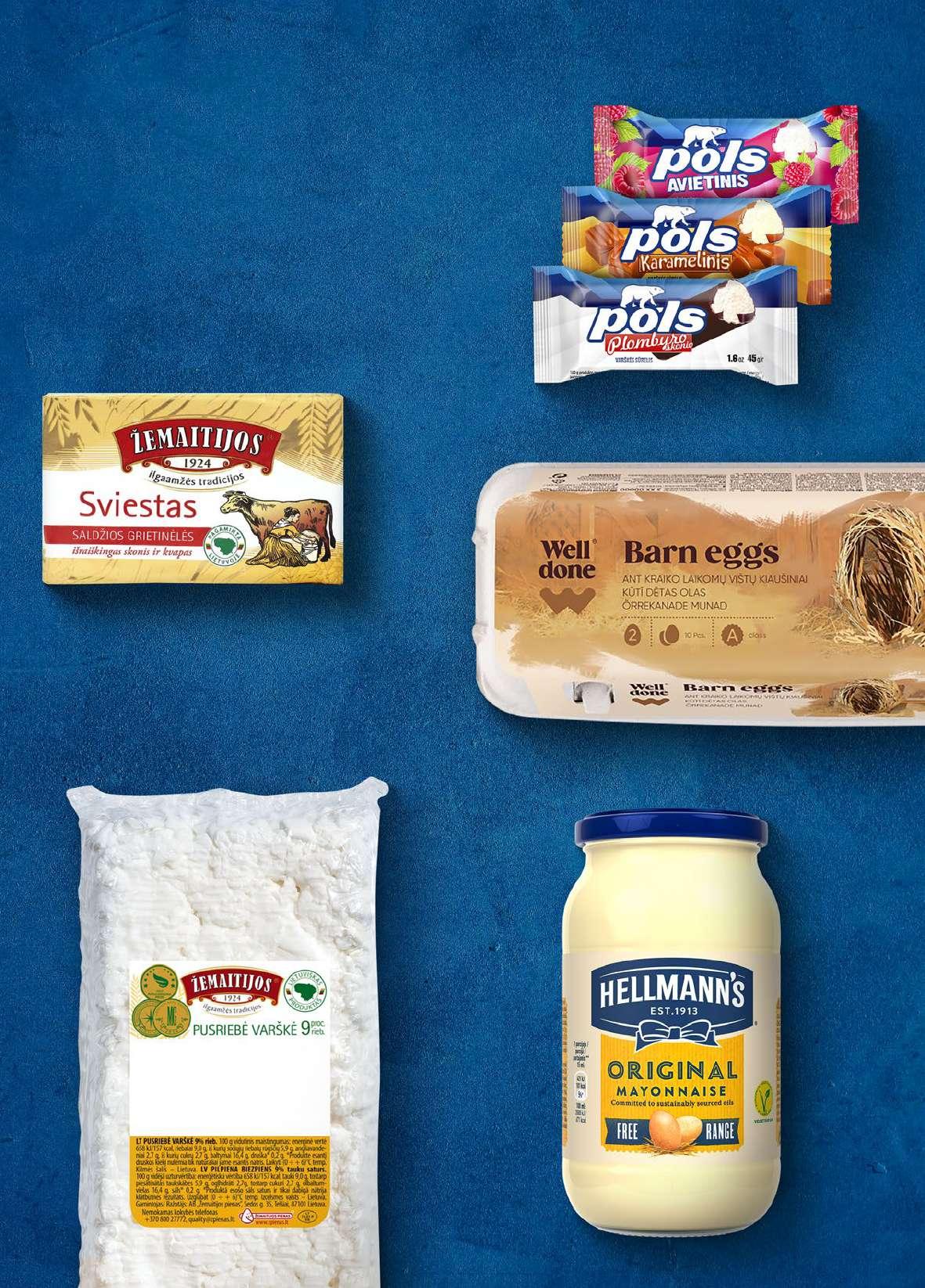 Glaistytas varškės sūrelis POLS** 3 rūšių, 45 g 1 kg – 8,67 € 0, 59 € € 39 0 %-33 Pusriebė ŽEMAITIJOS varškė** 9 % rieb., 1 kg Ypač maža kaina 6, 99 € € 49 4 % -35 Majonezas HELLMANN’S ORIGINAL 73 % rieb., 405 ml 1 l – 4,91 € Ypač maža kaina 3, 99 € € 99 1 %-50 Ant kraiko laikomų vištų kiaušiniai WELL DONE 1 dėž. (10 vnt.) 1 vnt. – 0,15 € Ypač maža kaina 2, 49 € € 49 1 %-40 Saldžios grietinėlės ŽEMAITIJOS sviestas 82 % rieb., 200 g 1 kg – 8,45 € Ypač maža kaina 3, 29 € € 69 1 %-48