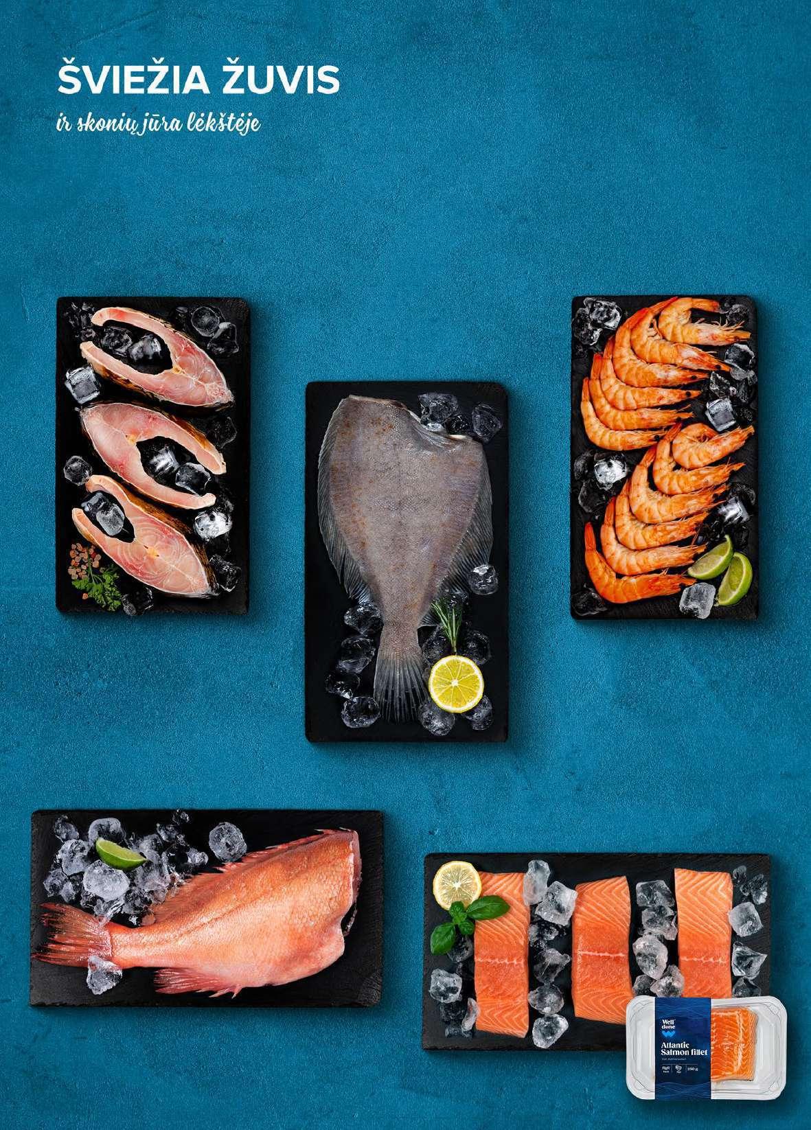 Atšildytos virtos baltakojės blyškiosios krevetės** dydis 60/80, 1 kg 13, 99 € € 99 9 %-28 Atšildytos skrostos paprastosios gelsvapelekės plekšnės** 1 kg 6, 49 € € 99 4 %-23 Atšildyti skrosti didieji jūriniai ešeriai** 1 kg 9, 99 € € 99 6 %-30 Švieži karpių pjausniai** 1 kg 11, 99 € € 49 9 % -20 Šviežia atlantinių lašišų filė su oda WELL DONE** 250 g 1 kg – 23,96 € 6, 99 € € 99 5 % -14