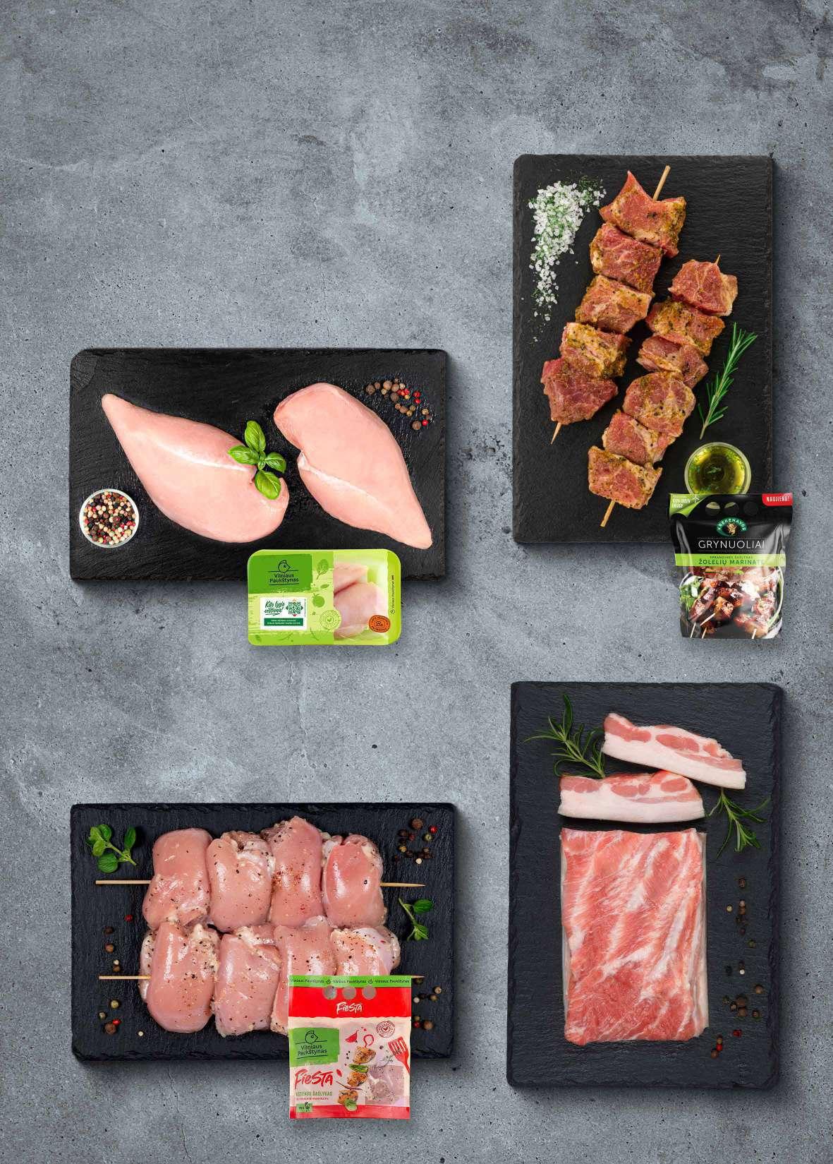PAUK ŠTYNO vištienos š a šlykas FIESTA pipiriniame marinate 680 g 1 kg – 6,60 € 6, 49 € € 49 4 %-30 KREKENAVOS kiaulienos sprandinės š a šlykas žolelių marinate GRYNUOLIAI** 800 g 1 kg – 5,99 € Ypač maža kaina 7, 99 € € 79 4 %-40