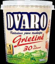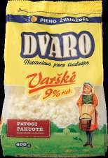 l – 6,25 € Lietuviškas DVARO varškės sūris** 22 % rieb., 1 kg € 99 16 € 99 14 DVARO kefyras 2,5 % rieb., 900 g € 49 1 1 kg – 1,66 € € 29 1 1 kg – 1,43 € Š altibarščių kefyras SAULĖ S PIENAS** 5 % rieb., 1 kg € 39 1 € 09 1 ROKIŠKIO tepamasis lydytas sūrelis** 23 % rieb. s. m., 2 pak. × 175 g 1 kg – 8,54 € € 99 2 vnt.2 Ant kraiko laikomų vištų kiau šiniai MŪSŲ KOKO 1 dėž . (10 vnt.) € 49 2 1 vnt. – 0,25 € € 89 1 1 vnt. – 0,19 € DVARO grietinė** 30 % rieb., 380 g € 69 2 1 kg – 7,08 € € 39 2 1 kg – 6,29 € Pusrieb ė VILKYŠKIŲ varškė** 9 % rieb., 180 g € 09 1 1 kg – 6,06 € € 95 0 1 kg – 5,28 €
